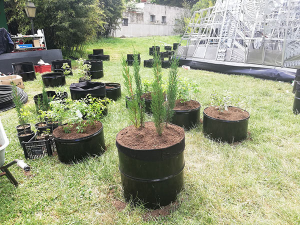 Repurposed oil barrels containing 2,500 saplings of 46 European tree species will surround the Living Chapel.