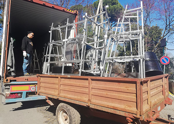 After a voyage across the Atlantic Ocean, all the sections for the Living Chapel arrive in Rome.