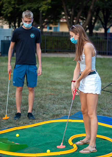 Working their magic to provide winning activities for students – not only during the "PC3" start of the semester, but year-round – the Office of Student Engagement transformed the lawn of the Thompson Professional Development Center into a challenging nine-hole miniature golf layout on Friday night.Photos by Tim Wegman, student photographer