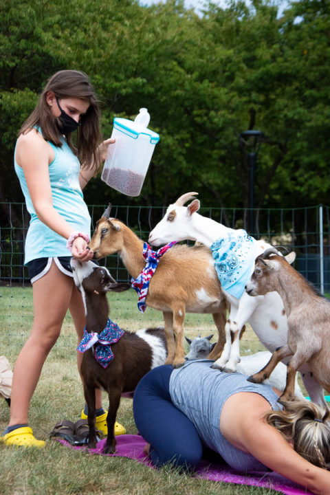 Take a form of exercise known for offering relief from stress, add animals who love to interact with humans, and top it all off with the sighs and smiles that flow when tiny hooves maintain their balance through inadvertent massage. Yup, it's the campus return of Goat Yoga! Participants in Wednesday's three sessions kept their distance from one another, but still managed some close encounters of the "herd" kind in the Student Engagement-sponsored activity. For the second year, Buttinhead Farms brought its four-legged funfest from Hunlock Creek to the PDC lawn as part of Penn College's traditional "PC3" start to the semester.Photos by Juvy A. Orillaza, student photographer