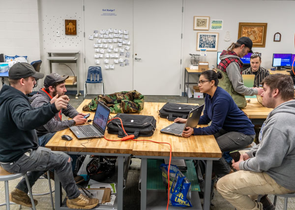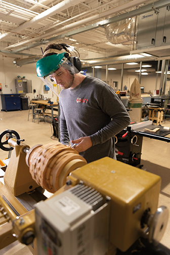 From the Fall 2020 Penn College Magazine: Makers from all majors learn from one another as they bring ideas to life in The Dr. Welch Workshop: A Makerspace at Penn College. Read more in “Making Makers.”(Photos were taken before social distancing/masking protocols were instituted on campus.)
