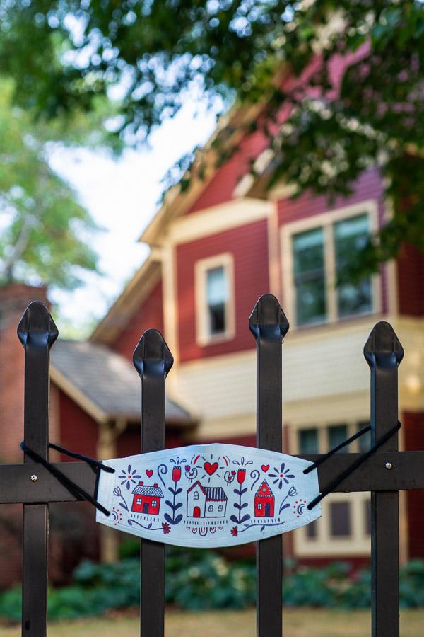 “I thought the mask project was an appropriate way to start the semester off, with most students having just returned from their COVID-altered summer experiences and new to the practice of wearing masks on campus,” said Deborah L. Stabley, an adjunct art faculty member who also instructs the Ceramics 1 classes. “The colorful ceramic masks provided an outlet for some much-needed venting, as well as a background for some lighthearted messages. I love that they are ‘wrapped’ around The Victorian House, providing more meaning to the project, and visible for all to see.”