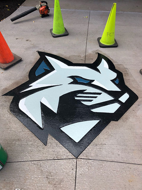 The on-campus work was facilitated by Franklin H. Reber Jr., instructor of building construction technology, and are just the latest examples of projects that transcend each student participant's college years.The sidewalk mascot, replicating the Athletics logo with a stylish splash of Wildcat blue, caps a replaced sidewalk near the Field House and UPMC Field.
