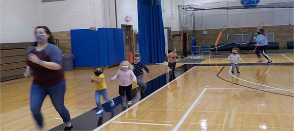 Two-year-olds from the Dunham Children's Learning Center's Bunnies class, taught by group leader Stacie L. Smith and assistant group leader Keara M. Hess (who provided the photos), traveled to nearby Bardo Gymnasium on Wednesday. "We ran off all of our energy and got to take a group picture," center staff reported. "On our way, we talked about the importance of wearing our masks around campus, and how it keeps us and others safe." A lesson in healthful compliance for all of us, from the mouths of babes!