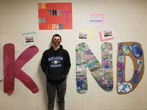 As part of its support for positive behavior, as well as teaching children to be kind, safe and respectful, the Dunham Children's Learning Center has launched a mini-trend well worth promoting. "We have placed the word 'kind' – minus the 'I' in 'kind' – in the hallway outside our center, encouraging our kiddos and students, faculty, etc., to join in the fun," noted Linda A. Reichert, the center's director, who said students have paused to snap photos to share on their social media accounts with the hashtag #PCTBEKIND. Optimistic for a groundswell, we offer this inspiring representation from across the Penn College community. After all, it's our "kind" of story!Photos provided