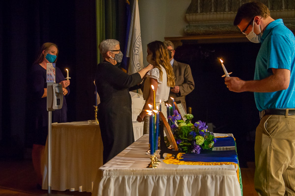 The 2020 Alpha Chi class was also invited to participate, as its induction ceremony was canceled last spring. Seven of those students attended Saturday's event: