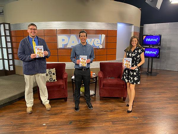 Penn College writer/video producer Tom Speicher, whose literary labor of love and friendship finessed a mentor's manuscript into print, was featured in a four-minute segment of WBRE's "PA live!" on Thursday afternoon. Co-hosts Haley Bianco and Christopher Bohinski discussed "Bucky Deacon's Dilemma," a youth football novel written by local sports legend Bill Byham in the 1980s, and revised and recently published by Speicher. The interview touched on the book's winding road to publication, its universal themes (leadership and conflict resolution, among them) and the philanthropic fact that sales benefit the institution's Emergency Scholarship Fund. "I'm very excited about that," Speicher said. "I've worked at Penn College for over 30 years now in various capacities, so it was very important for me that I was able to give back." Recommended for 10- to 14-year-olds, the book is available from Amazon in paperback ($6.99) and Kindle ($3.99) editions.