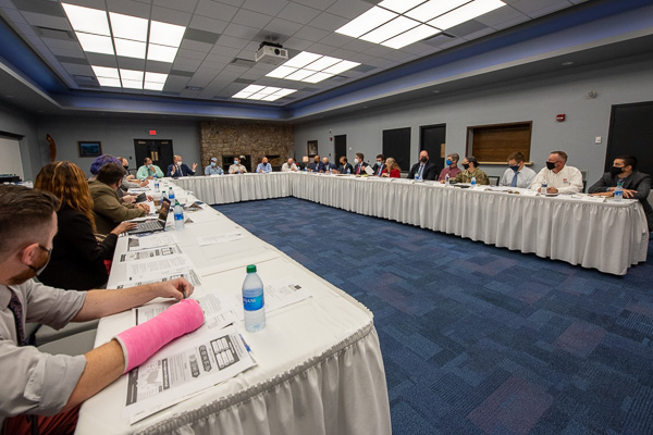 A collaborative path forward for recertification, repair and upgrade of the Williamsport Levee, an integral piece of flood control for the city and surrounding communities, was the focus of a Friday meeting on Penn College's main campus. U.S. Rep. Fred Keller (R-12) and the U.S. Army Corp of Engineers convened the meeting in the Thompson Professional Development Center, followed by a tour of the system's pump stations. Among those taking part were representatives of the Federal Emergency Management Agency; elected city, county and municipal officials; and Williamsport Municipal Water Authority/Williamsport Sanitary Authority administrators. Patrick Marty, chief of staff, attended on behalf of the college.