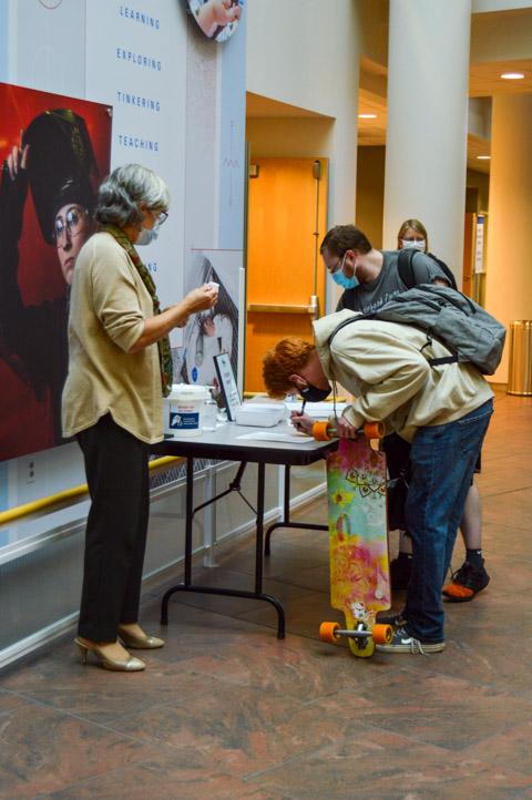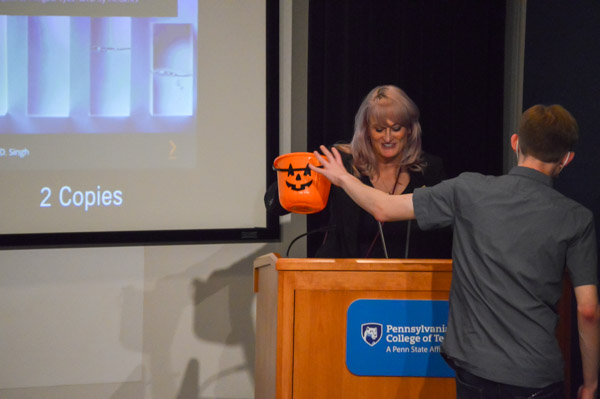 Appropriately invited by Penn College's Information Security Association, an authority on network intrusion (and subsequent containment) offered a keynote presentation in the Student & Administrative Services Center on Tuesday afternoon. The campus organization arranged for the appearance by Jon Matthews, vice president of digital forensics and incident response for CyberMaxx, in conjunction with October's designation as Cybersecurity Awareness Month. The speaker provided a 45-minute overview of such relevant issues as ransomware and remediation, drawing on a substantial resume that includes U.S. Army counterintelligence work.Photos by Alexis M. Burrell, student photographer