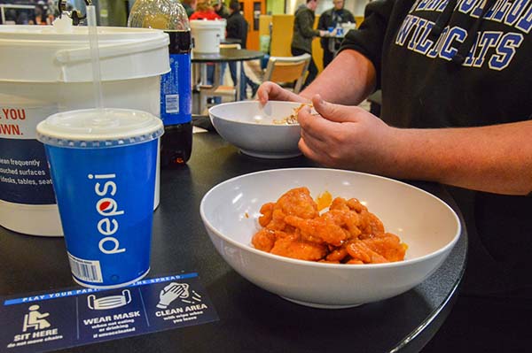 The Wildcat Events Board this week combined yummy food with a tantalizing opportunity for students to get acquainted with one another and involved with campus activities. Wing Night Wednesday in CC Commons offered free boneless chicken wings to the first 25 attendees, who enjoyed meeting someone new over the shared meal. The "speed-friending" event was modified for this COVID-19 era, as students – masked, except while dining – remained with one person for the duration rather than rotating through the dining unit. In addition to conversation, both in-person and with an online option, the evening provided information on joining WEB and having a say in Penn College events.Photos by Alexis M. Burrell, student photographer