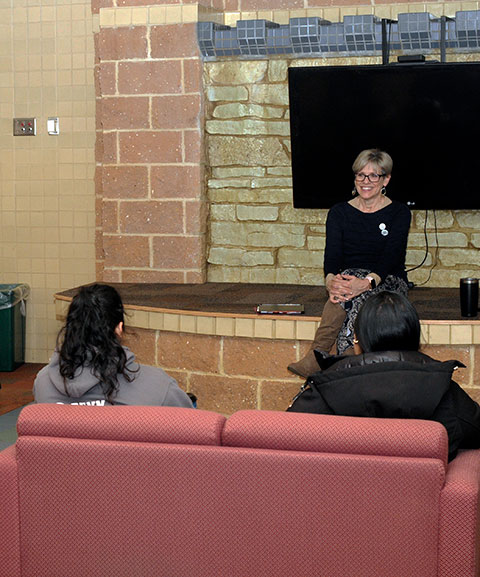 Chesmel brought an informal, conversational style to her interaction with a mid-morning Bush Campus Center Lounge gathering, showing a particular interest in what attracted the students to their chosen career paths ... the hands-on empowerment they feel at Penn College ... and any challenges thay've endured along the way.