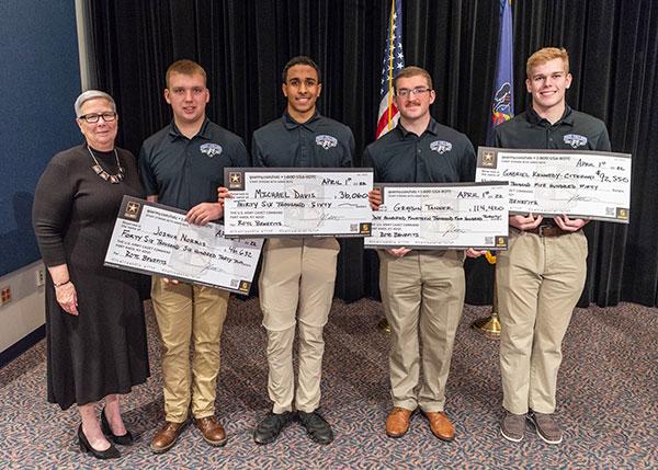 Michael S. Davis, of Philadelphia; Gabriel R. Kennedy-Citeroni, of Blairsville; Joshua E. Norris, of Gratz; and Grayson M. Tanner, of St. Matthews, South Carolina, took the Army ROTC contracting oath during an April 1 ceremony at the college. With their contracts, all four cadets will receive a monthly stipend from the Army, and some will be awarded a scholarship covering tuition and fees and providing a book allowance.
