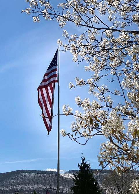 While the foothills surrounding campus carry snow-white remnants of the storm that started the workweek, these blue-sky views outside the Student & Administrative Services Center – captured by the Financial Aid Office's Kimberly A. Venti over her Wednesday lunch hour – offer a scenic reminder of the "budding" change of seasons. Like April's supposed to look, you know?