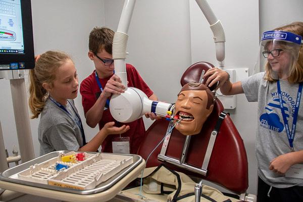 My Tomorrow adventurers work together in the dental X-ray room to produce a real digital X-ray that they’ll soon view on screen to diagnose Dexter’s dental health.