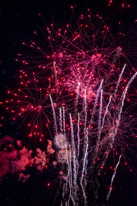 The illuminating show, set off from the south side of campus, accends the exterior Field House lighting. (Photo by Kimberlee R. Rusczyk)