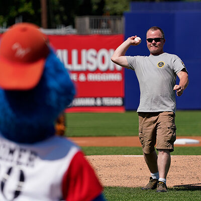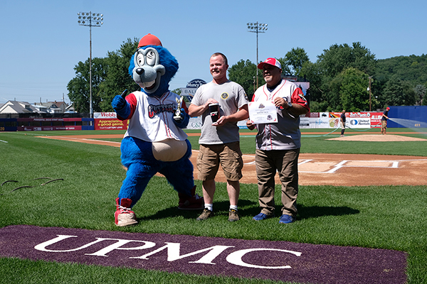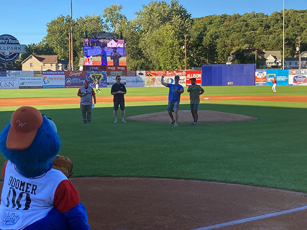 Saluted on July 10 – setting up a contest between the 'cutters and the visiting State College Spikes – was another veteran employed at Penn College: Master Sgt. David E. Tice, ROTC instructor for the Bald Eagle Battalion. He has served in the Army for more than 33 years, which includes four deployments. He is leaving for his fifth (and hopefully final) deployment this fall.The program, in partnership with EQT Corp., a natural gas producer, has paid tribute to active and retired military members at all 40 of this season's games in Muncy Bank Ballpark at Historic Bowman Field.