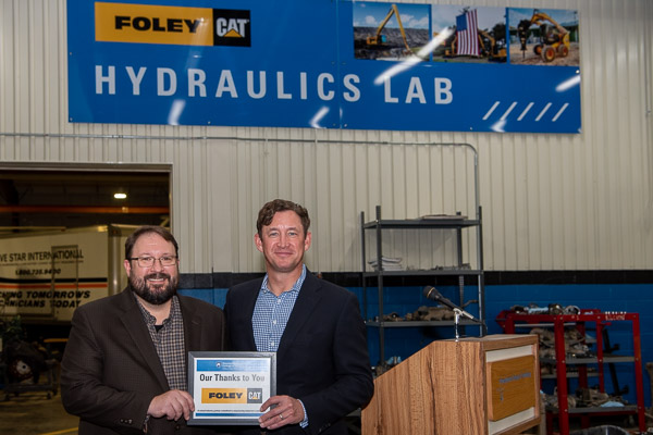 The two-decade alliance between Pennsylvania College of Technology and Foley Inc. was punctuated Oct. 10 with formal recognition of the Foley Hydraulics Lab in tribute to the first Caterpillar dealer to brand its territory at the college’s Schneebeli Earth Science Center.