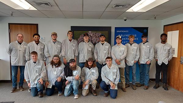 Spotlighting Penn College's provision of students' real-world experiences through collaboration with local companies, Howard W. Troup's Fixture Design & Fabrication (MTT 222) class traveled to Spartronics on Oct. 12. "Our visit was to see how a modern electronic circuit board manufacturer utilizes fixtures to make their products and to see if we can make some fixtures for them," said Troup, an assistant professor of automated manufacturing/machine tool technology in the School of Engineering Technologies. Located along Reach Road, Spartronics manufactures highly complex circuit card assemblies and electromechanical products for the aerospace and defense, medical, and instrumentation and control industries.Photo provided
