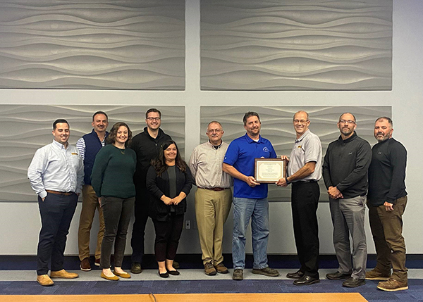 A plaque was presented to Chris S. Weaver, a faculty member at the Schneebeli Earth Science Center, during this month's advisory committee meeting of Caterpillar dealer representatives at the college’s Thompson Professional Development Center.