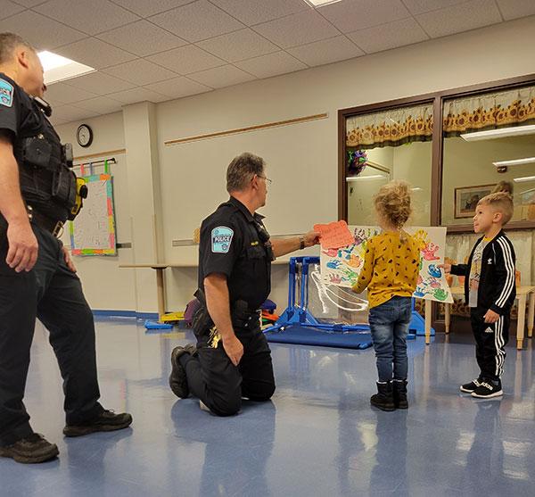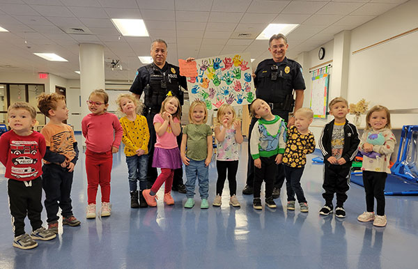 Penn College Police Chief Chris E. Miller and Lt. David C. Pletz stopped by the Dunham Children's Learning Center on Wednesday to receive a special "Thank you" from the preschool classrooms. The department was in the news late last month after shots were fired at an officer responding to an off-campus call, but center officials noted their gratitude predates that incident. "After the event that took place a couple of weeks ago, it has been long overdue to show our support for those that take care of us so that we can be safe at school," CLC Director Linda A. Reichert said.Photos provided