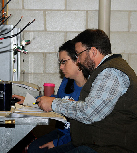 Painstakingly tabulating competitors' scores all day long for a thoroughly accurate spreadsheet of final results are Laura M. Machak, K-12 outreach specialist, and Justin W. Beishline, assistant dean of diesel technology and natural resources.