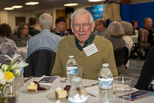 A beloved former drafting faculty member and dual scholarship donor, Chalmer C. Van Horn, smiles for the camera.