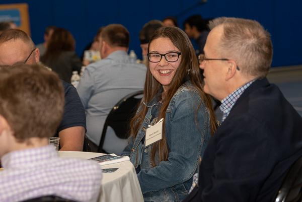“He was the best! And I’m sure many other students would say that, too.” So were the words of Nicholas J. Telesky (right) of his former professor, Kenneth C. Kuhns (center). The two enjoyed reuniting at the event, along with Nicholas’ daughter, Sydney M., a college relations student assistant who helped with luncheon logistics. Sydney, human services & restorative justice, is president of Penn College's Student Government Association. Nicholas, ’04, building automation technology, and ’02, electrical technology, also remarked about how “patient” Kuhns was.