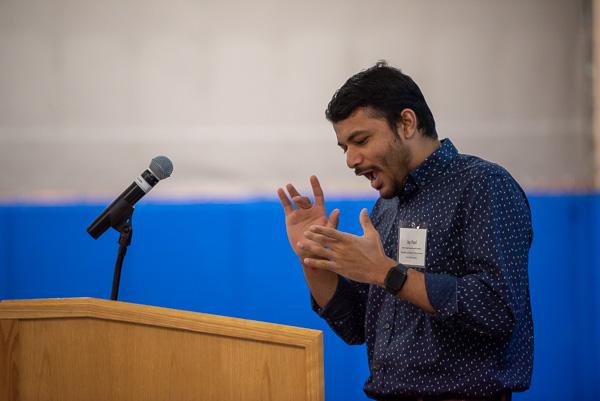 Reed noted that $1.4 million in scholarship funds were awarded by the Penn College Foundation this academic year, and introduced Jay Patel – a member of the Deaf community who holds an associate degree in precision manufacturing technology from Rochester Institute of Technology, is pursuing a bachelor's at Penn College in manufacturing engineering technology, and who was supported at the event by Heidi E. Roupp, disability and access resources specialist/staff interpreter.