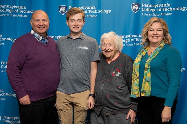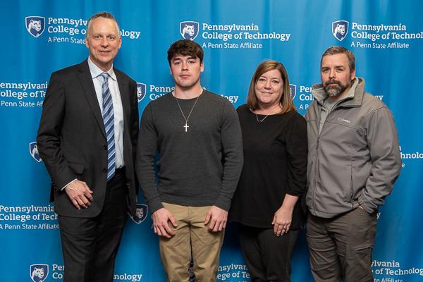 The college president joins Penn College Presidential Scholarship recipient Jake G. Skarbek and his parents. Skarbek, of Punxsutawney, is in heating, ventilation & air conditioning technology.