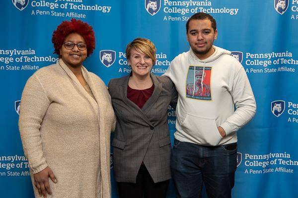 Loni N. Kline (center), senior vice president of college relations/chief philanthropy officer, joins two Kline Family Scholarship recipients: Monique C. Anderson-Parker (left), human services & restorative justice, and Imir Webb, engineering CAD technology. Both students reside in Williamsport.