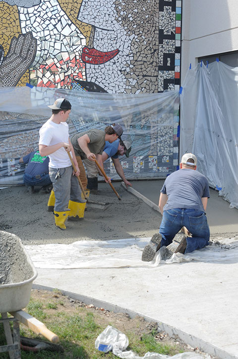 As renovations continue at Penn College's Physician Assistant Center, students in instructor Franklin H. Reber Jr.'s Concrete Construction class spent much of their Friday making complementary exterior improvements.