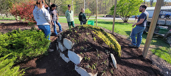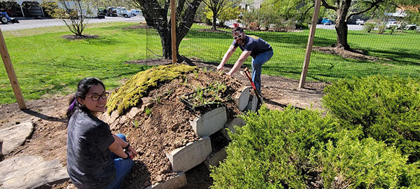 "Of course, the Mud Man was just fun, but it did bring together the idea of the living retaining wall; the growing of plants; and the creativity of the eyes, ears and the head itself. The art and science of growing plants is what horticulture is all about," Bower said, "and the gathering of the materials played into the sustainable element, so it fit into class perfectly."