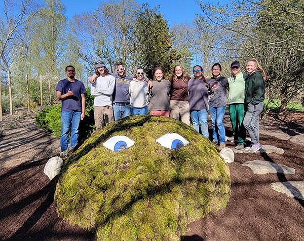 Students in Carl J. Bower Jr.'s Sustainable Horticulture class combined a variety of elements – not the least of which was whimsy – in crafting a new inhabitant of the Schneebeli Earth Science Center.
