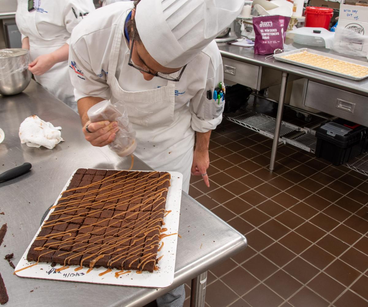 Summa checks in with Sofie E. Howard, baking & pastry arts, of South Williamsport, as she makes a salted caramel that will top bite-sized brownies.