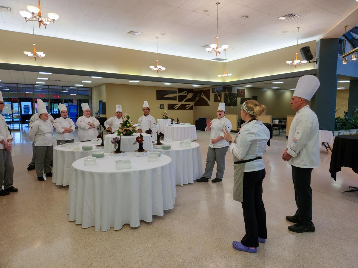 The sold-out April 14 event entailed hors d’oeuvres in the Keystone Dining Room, tours of the culinary and baking labs (complete with more pre-dinner small plates being prepared within), three courses served in Le Jeune Chef Restaurant, and a return to Keystone Dining Room for a buffet of fine desserts produced by Summa and baking & pastry arts students.