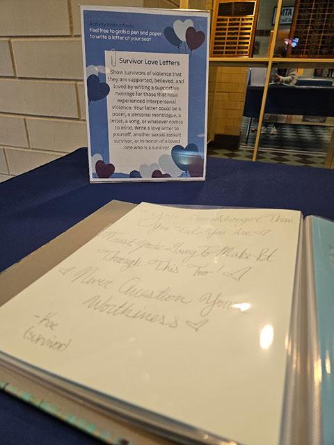 There were also opportunities to express kinship with survivors and rejection of "victim-blaming" through adding a square to the Denim Day Quilt and by writing to survivors that they are supported, believed and loved. The quilt is an ongoing project, while the letters were collected into a book and donated to the Williamsport YWCA's Wise Options floor.
