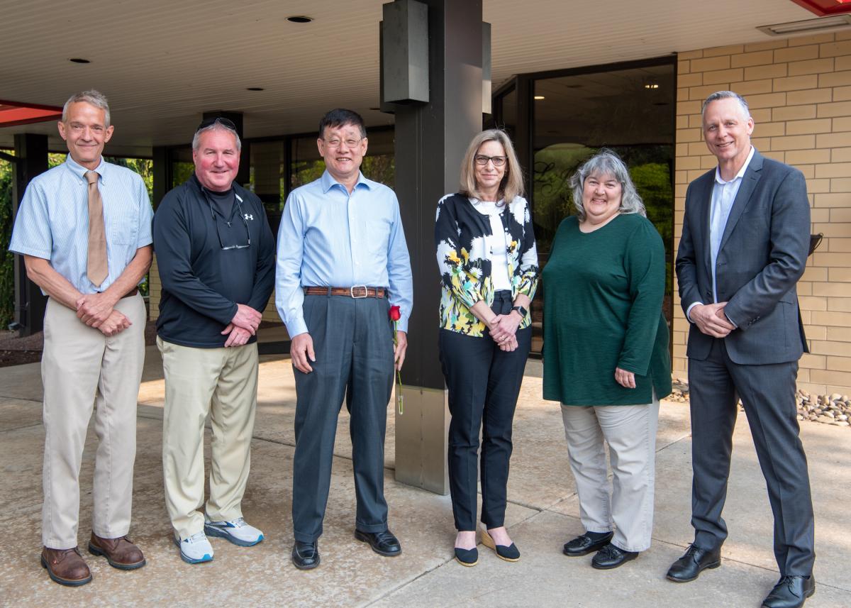 Pennsylvania College of Technology President Michael J. Reed (left) presented 2023 Excellence in Teaching Awards to (from left) Kenneth J. Kinley, Mary T. Stout, Chris E. Kule and Barbara K. Emert-Strouse; and a Part-Time Teaching Excellence Award to Wendy A. Rohrbach (at right).