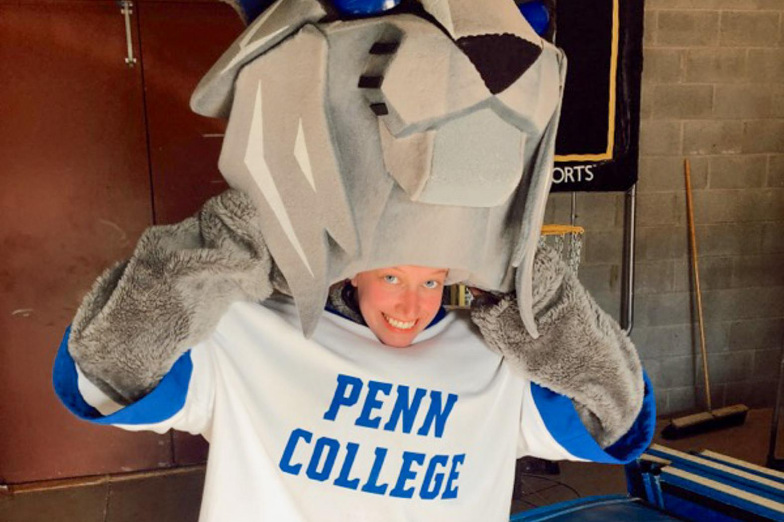 Her search for physician assistant programs brought her to Penn College, where she continued her softball career with the Wildcats and helped to initiate the team’s first “Yellow It Out” suicide prevention game, held April 3, 2019 – the fourth anniversary of her father’s death. Yellow It Out is a campuswide Penn College initiative to highlight suicide prevention and awareness. In addition to providing educational resources, events encourage students and employees to don yellow, the color associated with suicide prevention. The second-base player also played the part of the Wildcat mascot during other athletics teams’ Yellow It Out games – two basketball games and a soccer game.