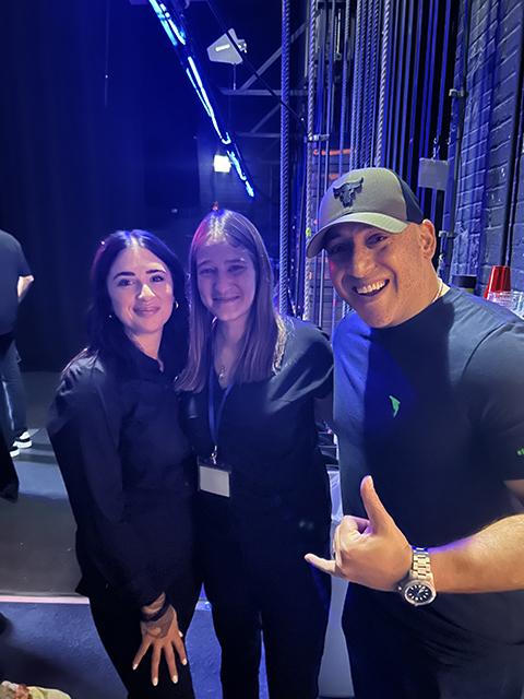 Snyder (center) and Hines are joined backstage by Krystle J. Richardson, HSJ Club president. Richardson, set to receive a bachelor's degree in human services & restorative justice at December commencement, also accompanied Snyder onto the CAC stage to present flowers to the sponsoring families.