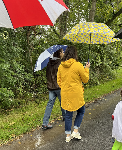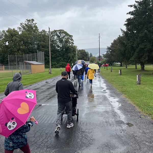 Two teams – PCT Hope, organized by Mary R. Shuma Rudberg, director of counseling, and Katie L. Mackey, assistant director of disability and access resources; and the Wildcat men's basketball team – paid no heed to rain and joined other local residents in Montoursville's Indian Park.