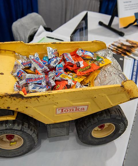 Who could resist a Tonka truck filled with candy? (This treat machine was at the Chivers Construction Co. Inc. table.)