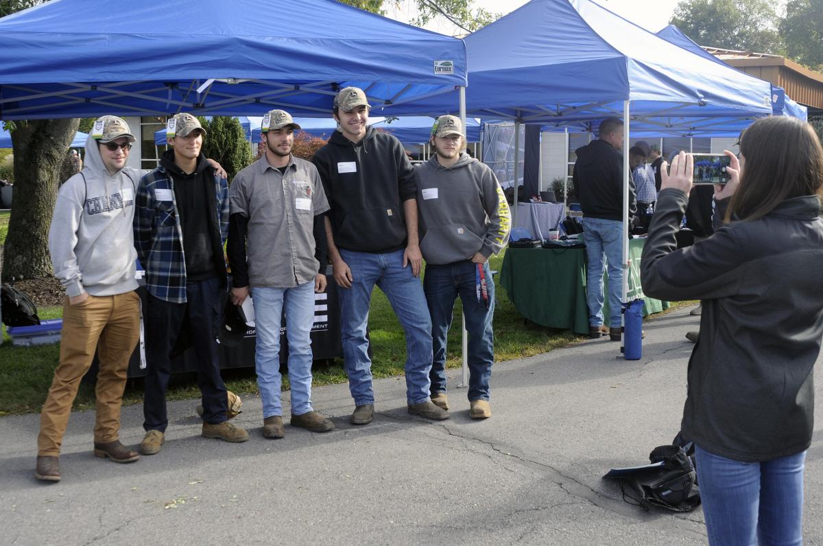 Samantha O'Donnell-White, director of human resources at Groff Tractor & Equipment, made a photoworthy splash in distributing John Deere camo hats to students.