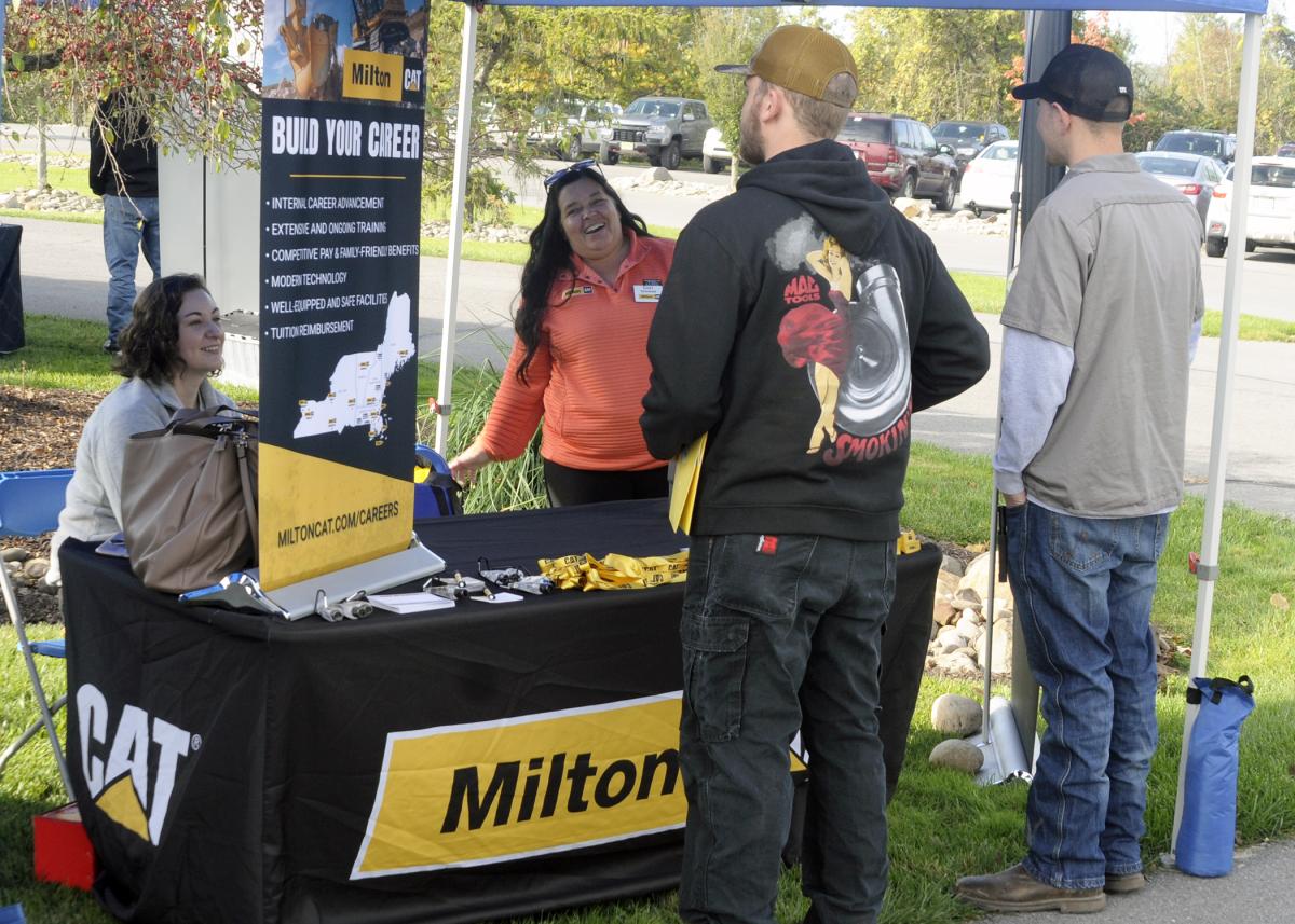 Another frequent visitor is Milton CAT – the Caterpillar dealership for Maine, Massachusetts, New Hampshire, upstate New York, Rhode Island and Vermont – personified Wednesday by Kathryn Herbert (left) and Cori Schneider.