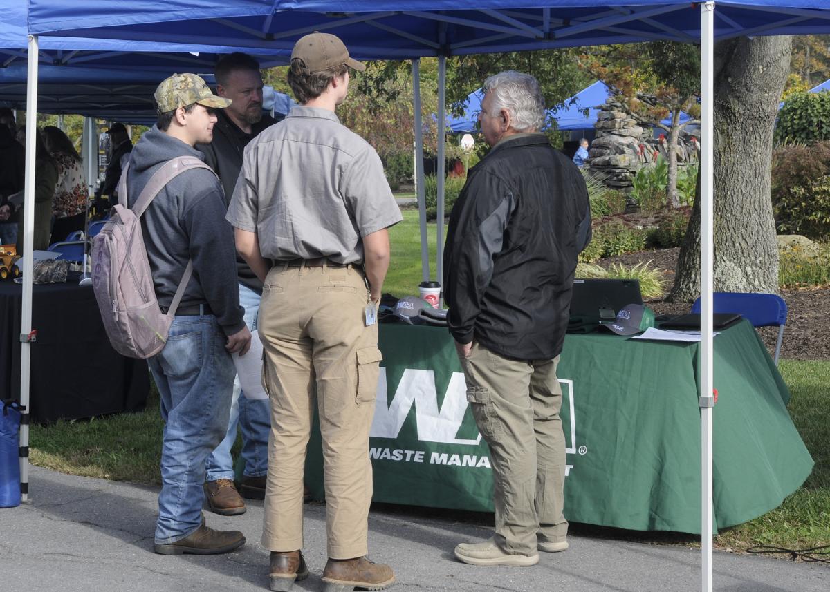 Potential technicians with Waste Management, among the companies that have risen to the Visionary Society level on the college's Donor Wall, interact with John Stanton (left background) and Kurt Albertson.