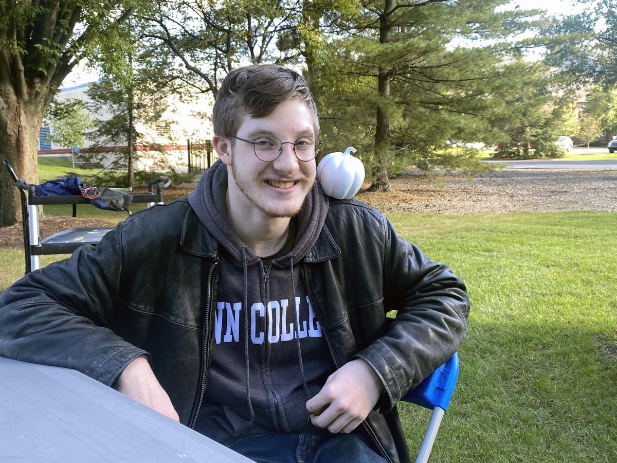 With a smile that lets the world know that's NOT a chip on his shoulder, Addison J. "A.J." Smith, of Montoursville, enjoys the midweek evening. Smith is enrolled in the college's new biomedical sciences major.