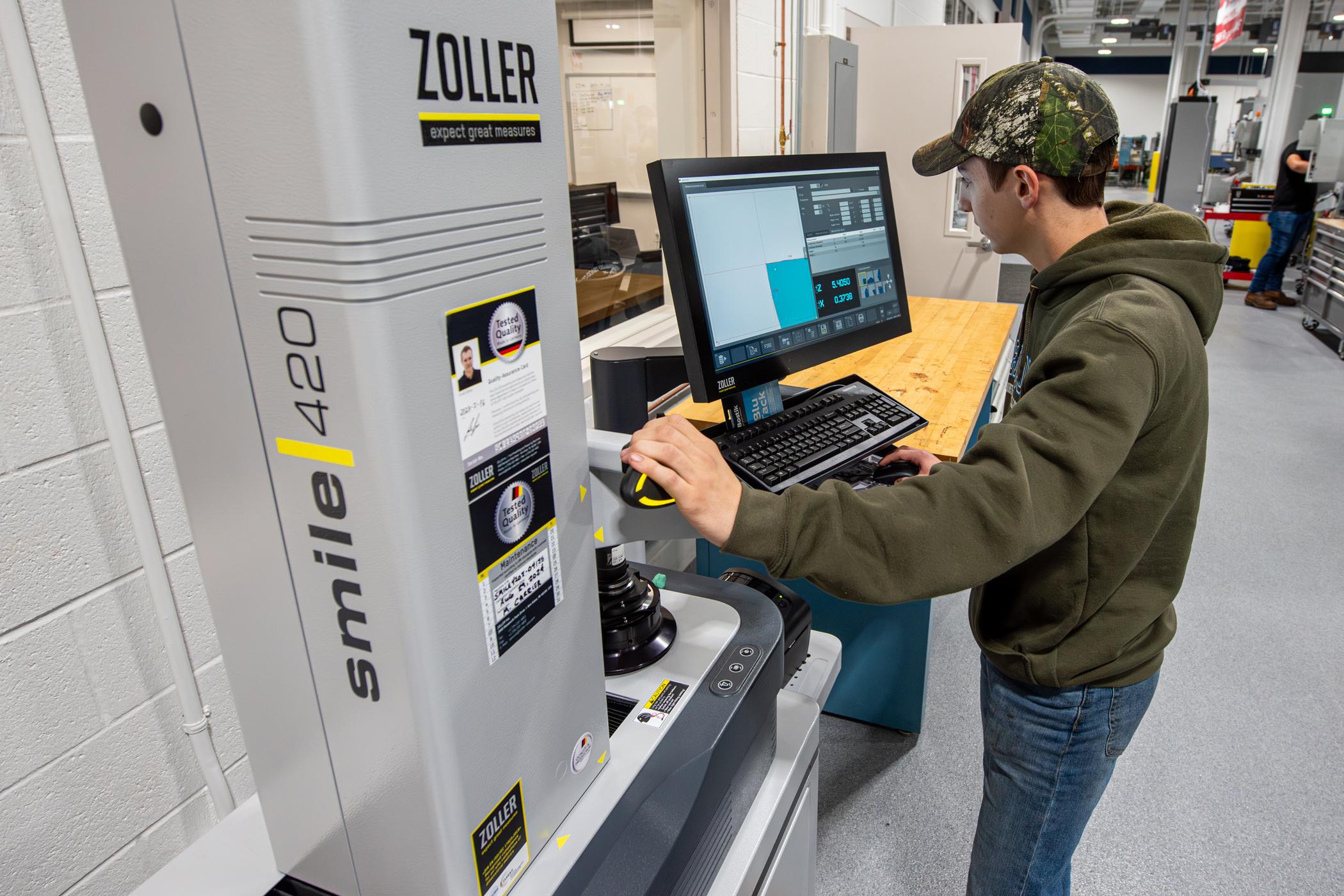 Owen R. Arnold-Paine, of Lebanon, a freshman manufacturing engineering technology student, uses the ZOLLER smile Pilot 4.0 presetter at Pennsylvania College of Technology. ZOLLER Inc. sold the equipment – including a software upgrade and full options package – to the college at a discounted rate. About 100 students per year will use the presetter.