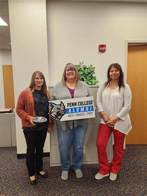 As part of "Give Thanks" week, a team from Alumni Relations delivered small gifts of appreciation to 147 alumni employees across all sites at Penn College. Alumni employees had the choice of $5 added to their Dining Services accounts or a box of goodies from Le Jeune Chef Restaurant.