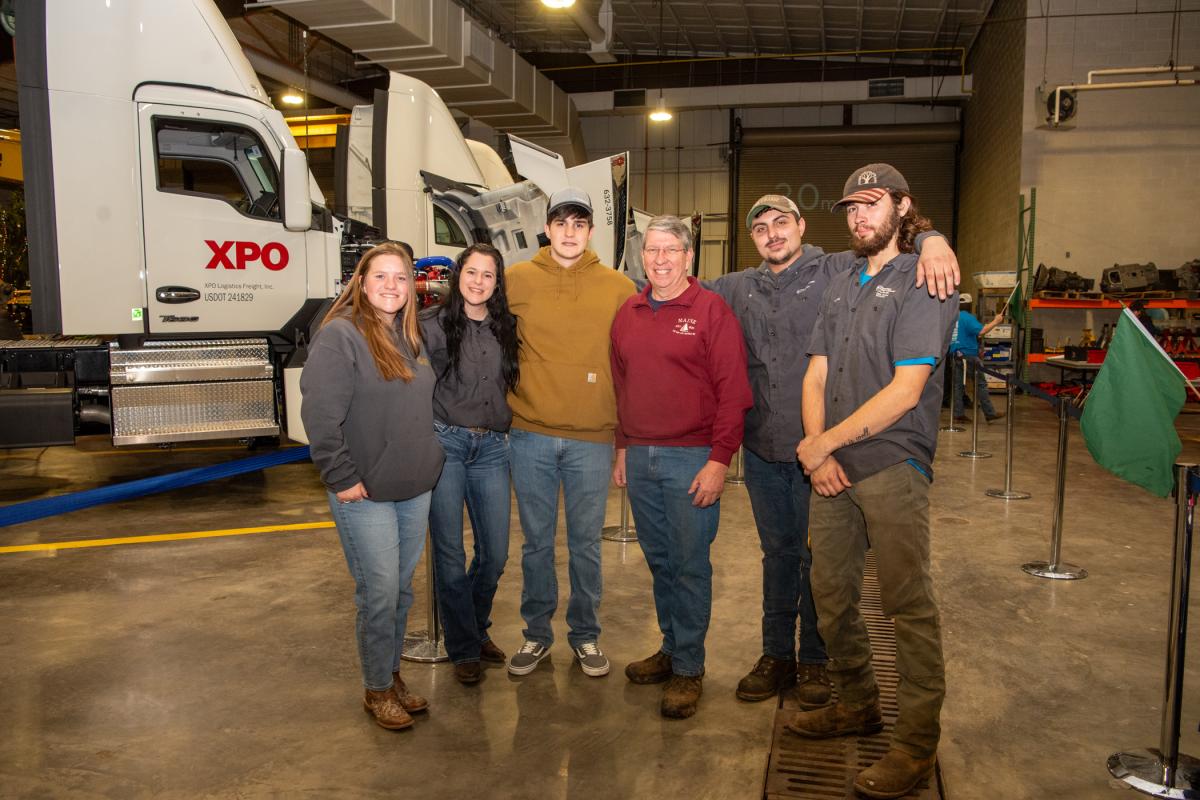 Berks Career & Technology Center (heavy equipment) took home top team honors and a $5,000 training certificate from Cleveland Brothers Equipment Co. Inc. at Pennsylvania College of Technology's diesel competition on Dec. 8-9. From left are Cleveland Brothers' Brian Clayton and Randy Fetterolf; team members Ethan Dierolf and Cristofer J. Cote; Chris S. Weaver, assistant professor of diesel equipment technology at Penn College; team member Brayden Richard; and Brad R. Conklin, instructor of diesel equipment technology at the college.