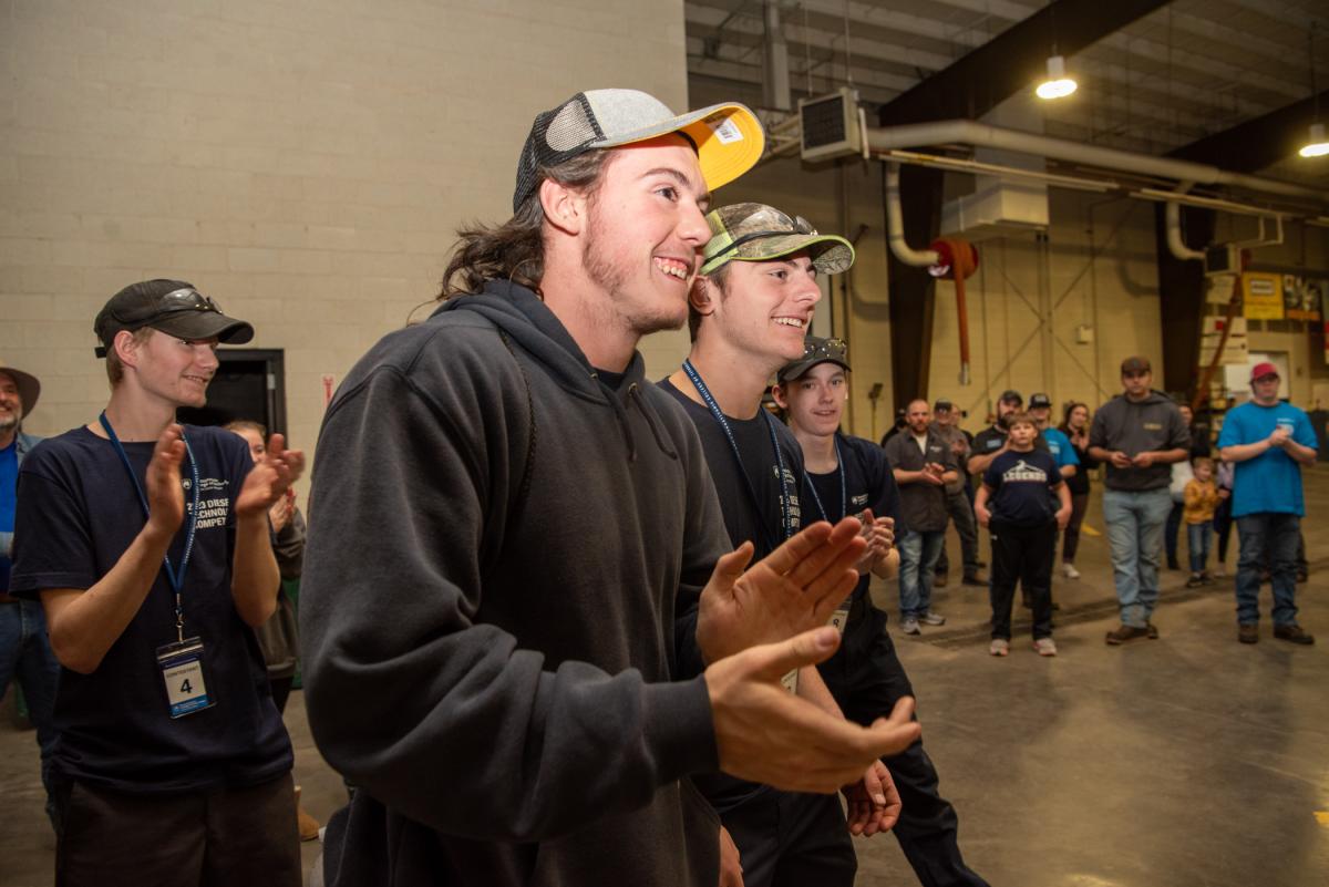 The heavy equipment team from Berks Career & Technology Center reacts to the announcement of its first-place overall win ...