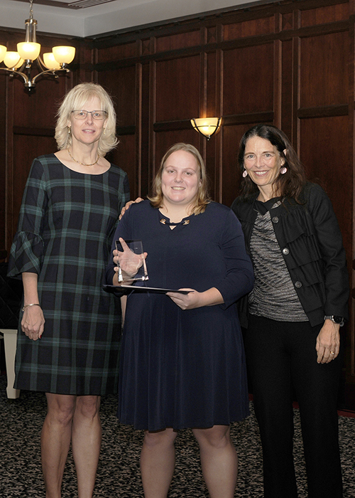 Presented with the Academic Vice President and Provost's Award for scholastic achievement and service was Jordan Specht, of Frederick, Maryland, who earned a bachelor's in nursing. She was introduced by Christine B. Kavanagh, assistant professor of nursing.